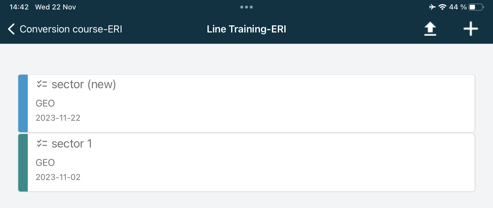 Anytime there are submitted but un-synced data on the app, there will be an upwards pointing arrow to remind the user to perform a sync when the work is completed. The sync can either be done by clicking on the arrow, or by clicking "Sync all" in the main navigation.