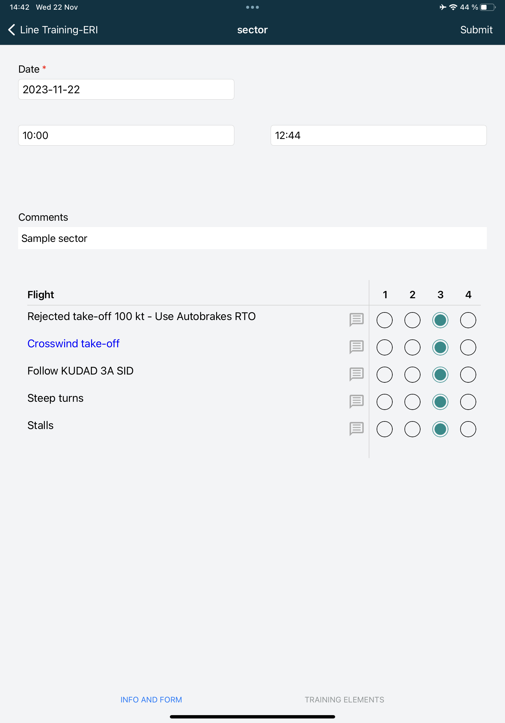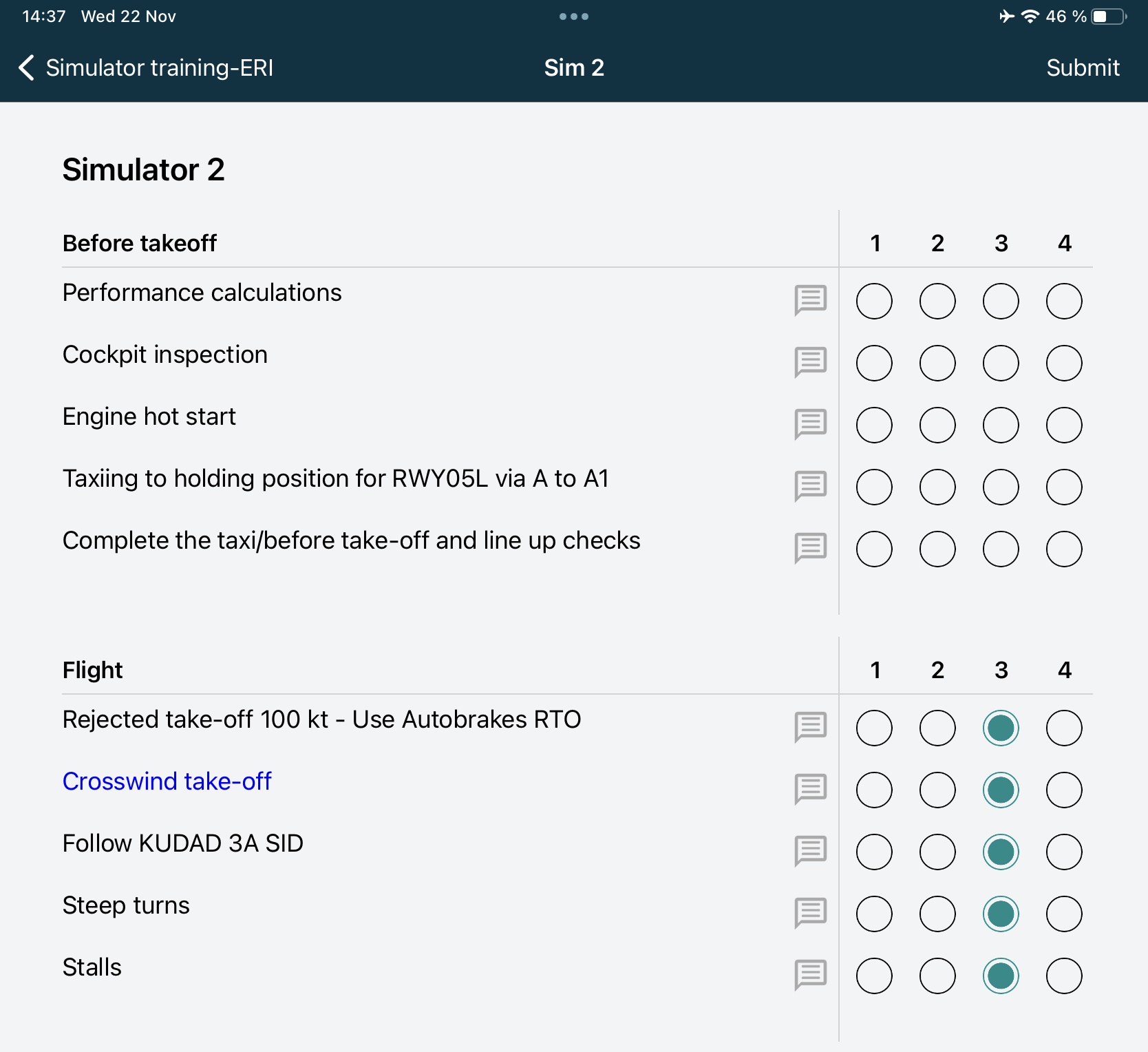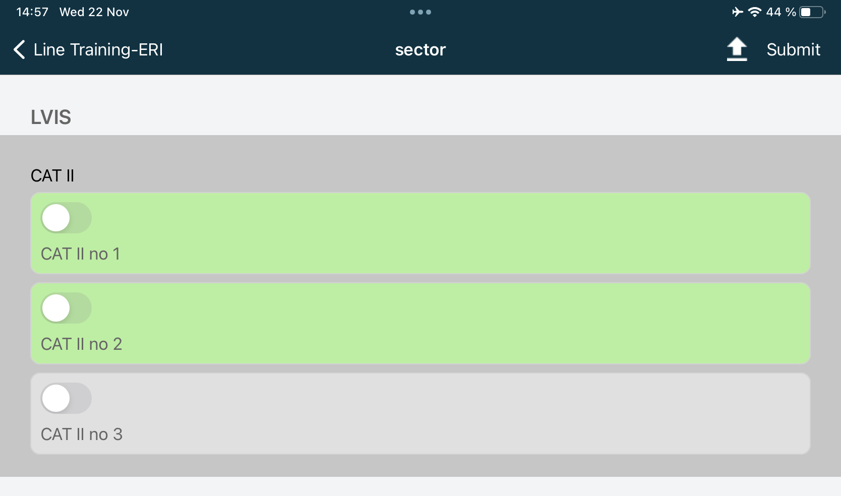 By clicking on Sim 2 in the above example, the form will open and can be submitted by filling out all required fields followed by submit in the top right corner of the app.