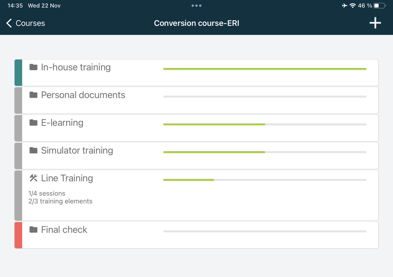 Any training element that have already been "checked off" will be green, while remaining elements are grey.
