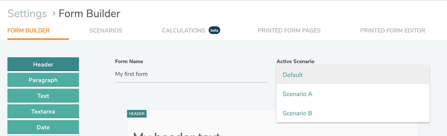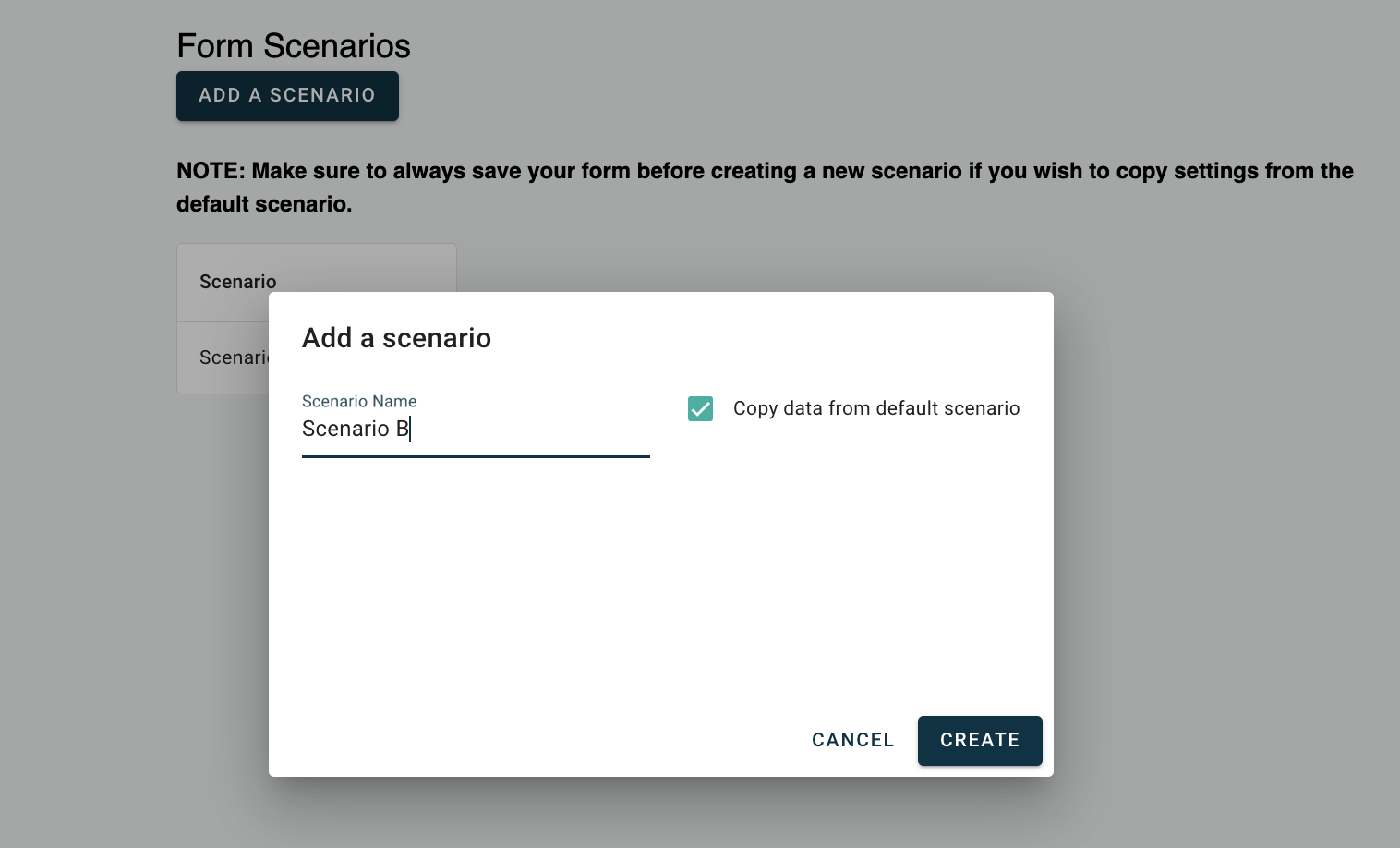 You will now find the created scenarios under the Active scenario selector in the form builder.
