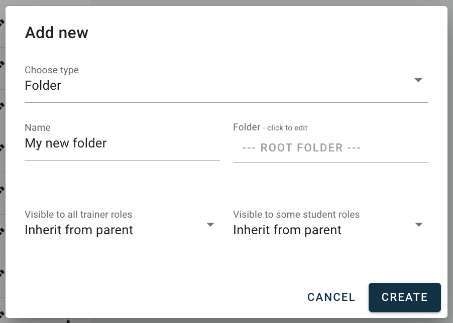 - Select if you want to place the new folder inside of another folder. If nothing is selected, the folder will remain in the root folder.
