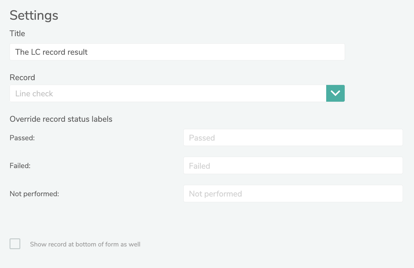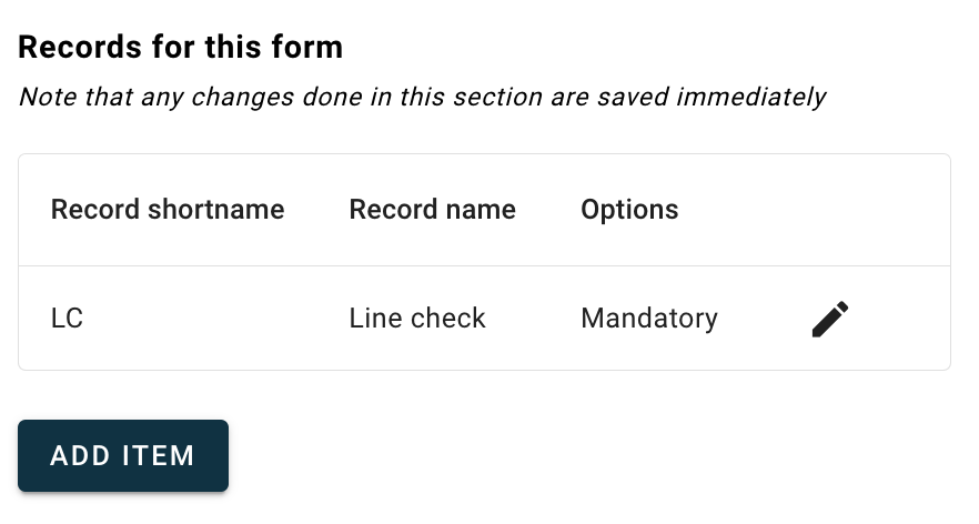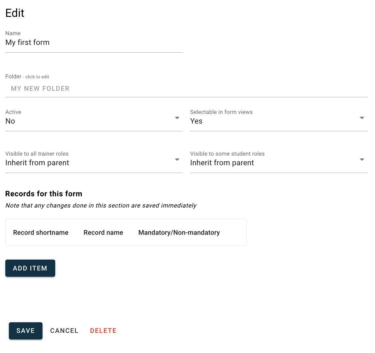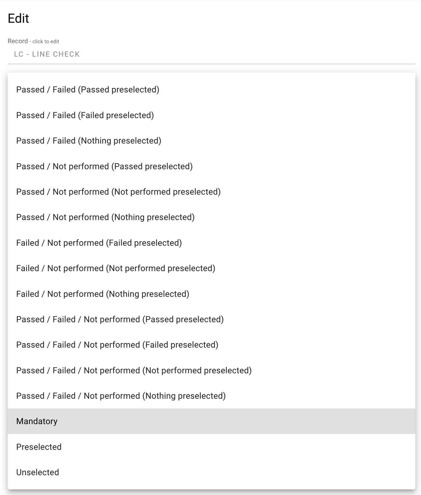 There are several options available for each record in a form. Whatever you select, will become the available options for instructors and examiners to select in a form when used. See the full list below.