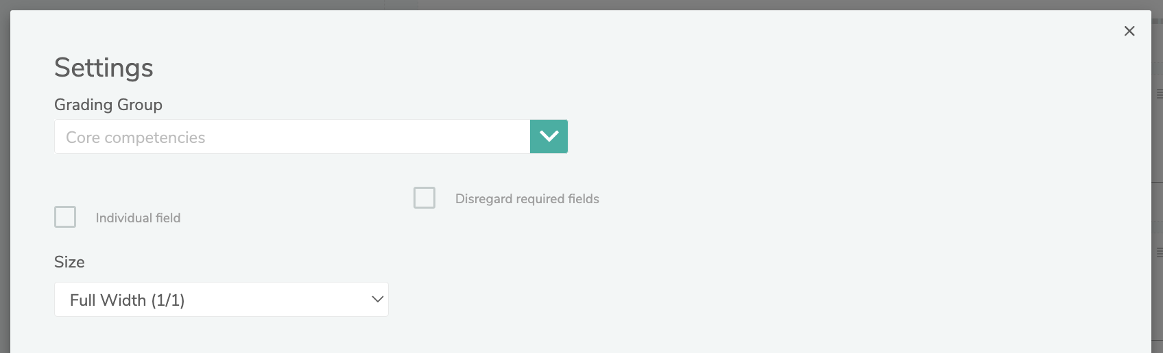 In the form builder grading element in the edit view, there is a selector in the top where the grading group can be selected. Once selected, the options to add items to the grading will be removed from the editor. One additional setting will now be visible - If the grading group has required fields, it is possible to override this setting on an individual basis here by clicking "Disregard required fields"