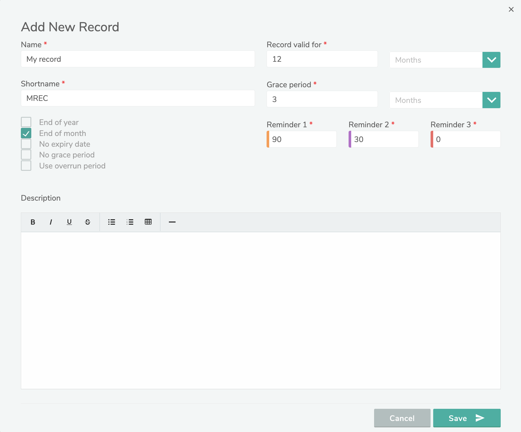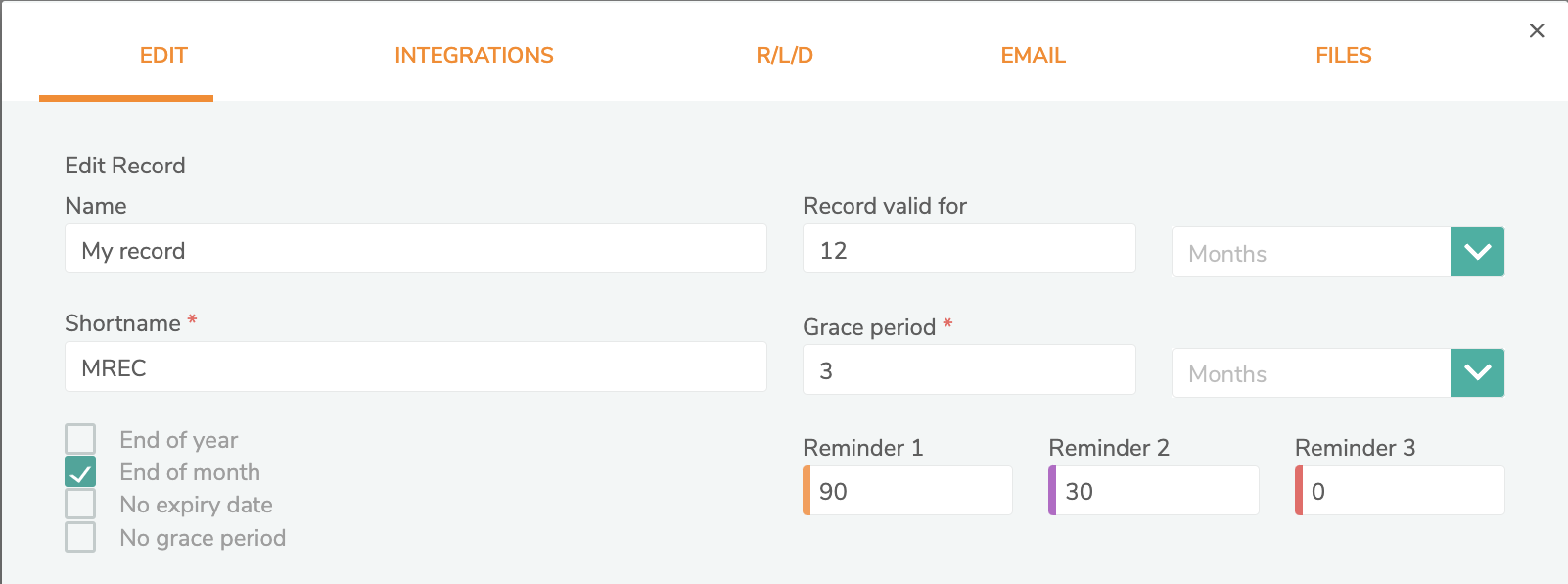 Record valid for 12 months with end of month selected