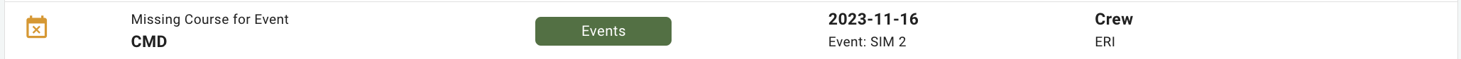 When an event that contains a course block is within a certain number of days of the event date, the Event task to start a course will appear. This only applies to course blocks that have the setting to show this notification.