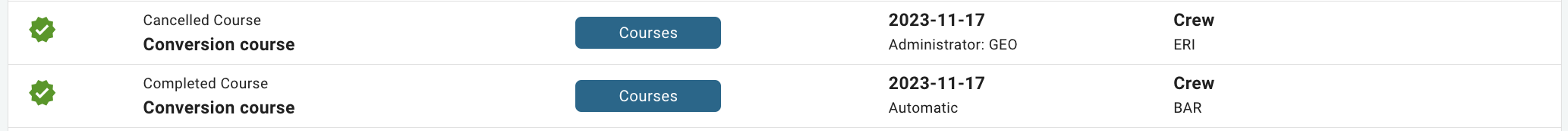 This will archive the course under courses on the crew members profile where the course report can be accessed.