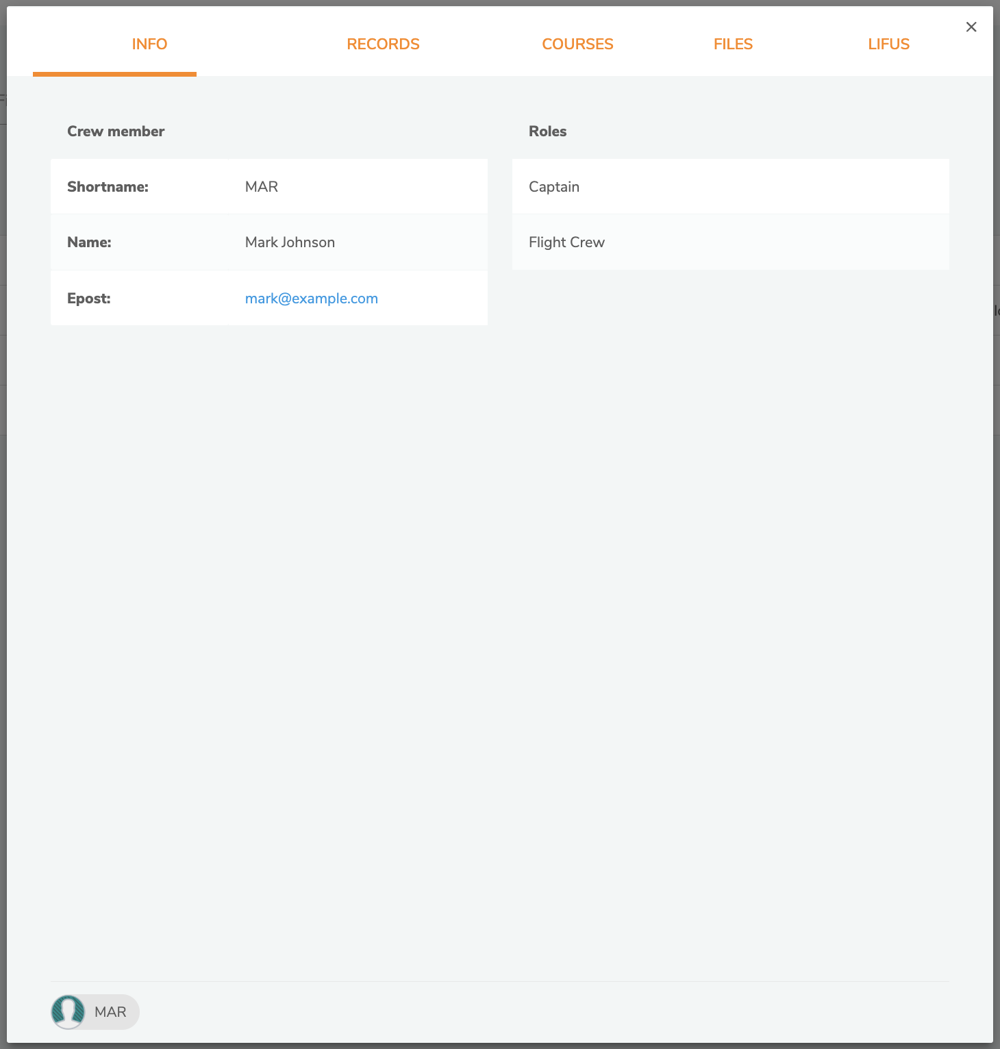 On this page, you will find a list of all crew in your operation along with some search and filtering functions. When clicking on a crew a pop-up will open.